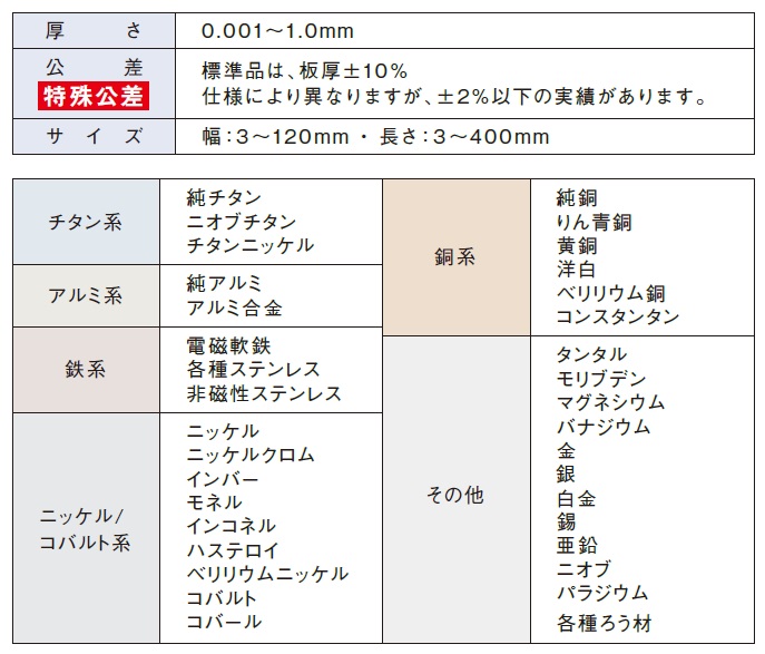・板厚 0.001〜1.0mm