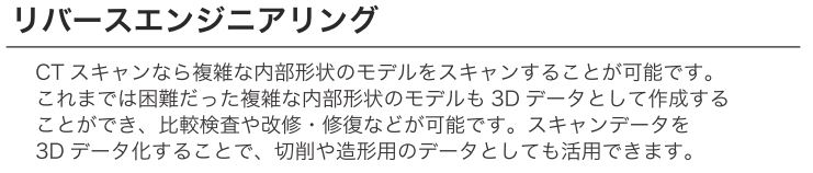 従来の手法では困難だった複雑な形状のモデルもX 線CT 技術により 製品内部のスキャンが可能になりました。製品内部の寸法計測や鋳造 品の欠損解析、リバースエンジニアリングなど幅広く活用されています。 ------------------ 株式会社 システムクリエイト エミダス会社情報・ホームページ 〒577-0022 大阪府東大阪市荒本新町1番20号 TEL︓06-6618-8555 FAX︓06-6618-8566 E-mail︓info@systemcreate-inc.co.jp ------------------
